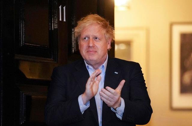 On April 2, 2020 Boris Johnson claps outside 11 Downing Street to salute heroes during Thursday's nationwide Clap